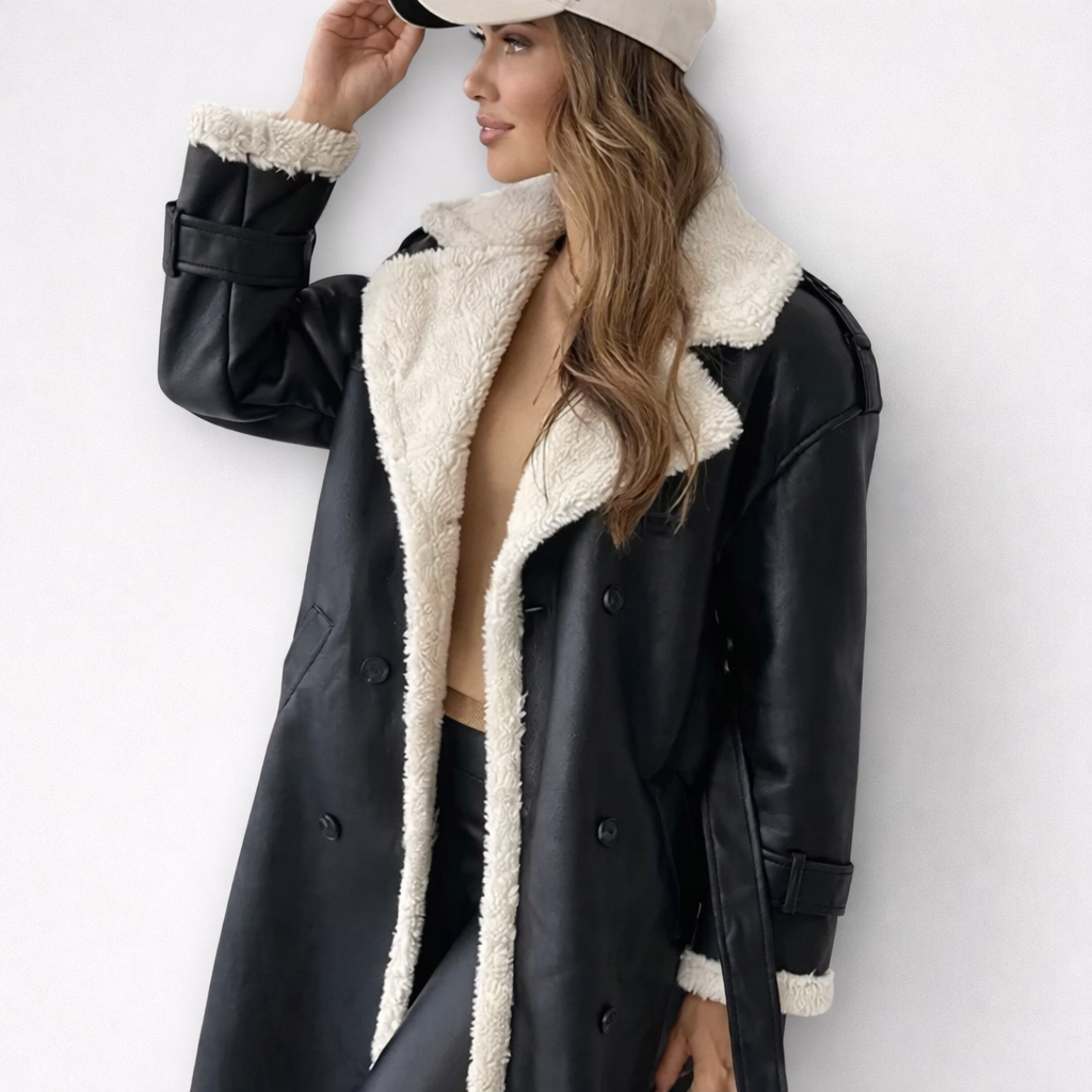 Entdecken Sie den luxuriösen Charme des langen Luna Mantels, der elegantes Fell und Leder in einer zeitlosen Silhouette vereint. Dank des weichen Fleecefutters bietet der Mantel angenehme Wärme an kühleren Tagen, während seine stilvolle Form jedem Outfit einen Charakter verleiht. Perfekt kombinierbar sowohl mit einem eleganten Kleid als auch mit lässigen Jeans – ein unverzichtbares Must-have für Ihre Wintergarderobe.